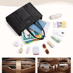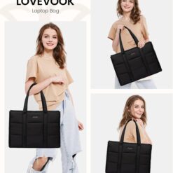 LOVEVOOK Tote Bags for Women, Puffer Quilted Work Bag Ladies Handbags with Zip, Large Womens Totes Hand Bag with Laptop Compartments for School Uni Teacher College
