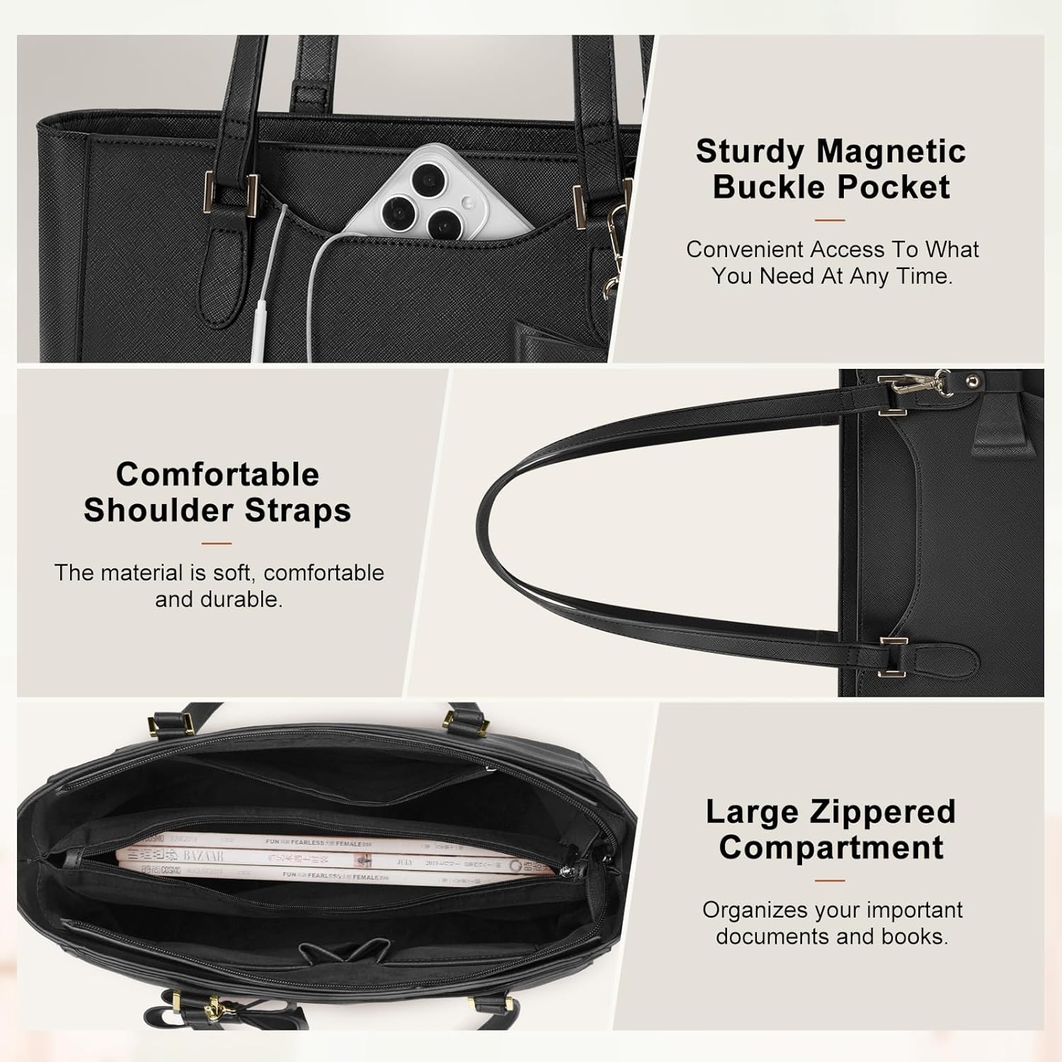 - MULTIFUNCTIONAL TOTE BAG: Tote bags for women have 1 front pocket with magnetic closure, 2 main compartments, 1 zippered compartment, 1 interior wall zippered pocket, 2 slip pockets and 2 pen pockets. The large-capacity multi-pockets design can easily organize your books, files, cosmetics, toiletries, cell phone, wallet, umbrella, bottle and so on.