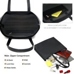 Ladies Tote Bags Simple PU Leather Handbags Work School Shopping Bags for Women with Zip and Inner Pocket