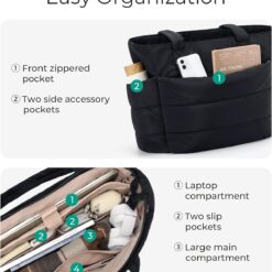 bagsmart Women’s Tote Bag, Lightweight Fluffy Handbag with Compartments, Shoulder Bag for Travel, Beach, Gym, Work, School