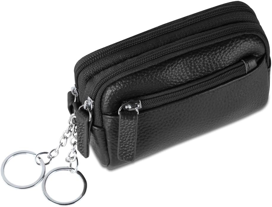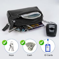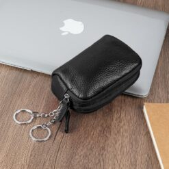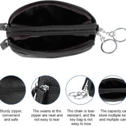 Leather Key Case, Car Key Case Wallet, Portable Vintage Key Holder Bag, Multi-Functional Zipper Key Case for Men Women, Coin Purse with Key Ring & Zipper